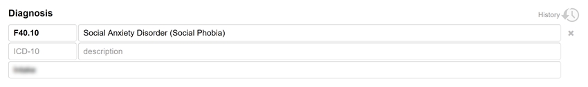 The Diagnosis section will automatically populate a DSM-5 diagnosis code and description based on the information entered in the client's Treatment Plan developed by the Rehab Specialist.